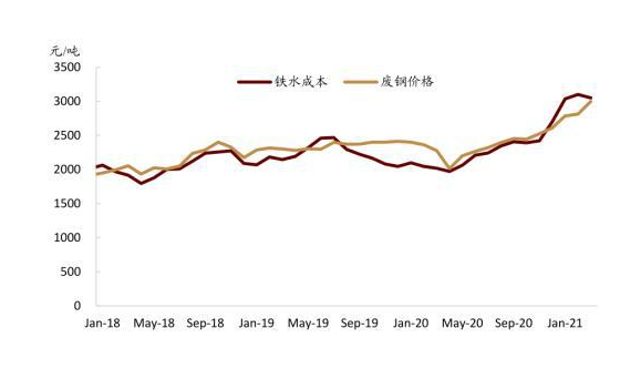 圖表: 歷史上廢鋼價格與鐵水成本有較強(qiáng)的聯(lián)動性,且長期溢價